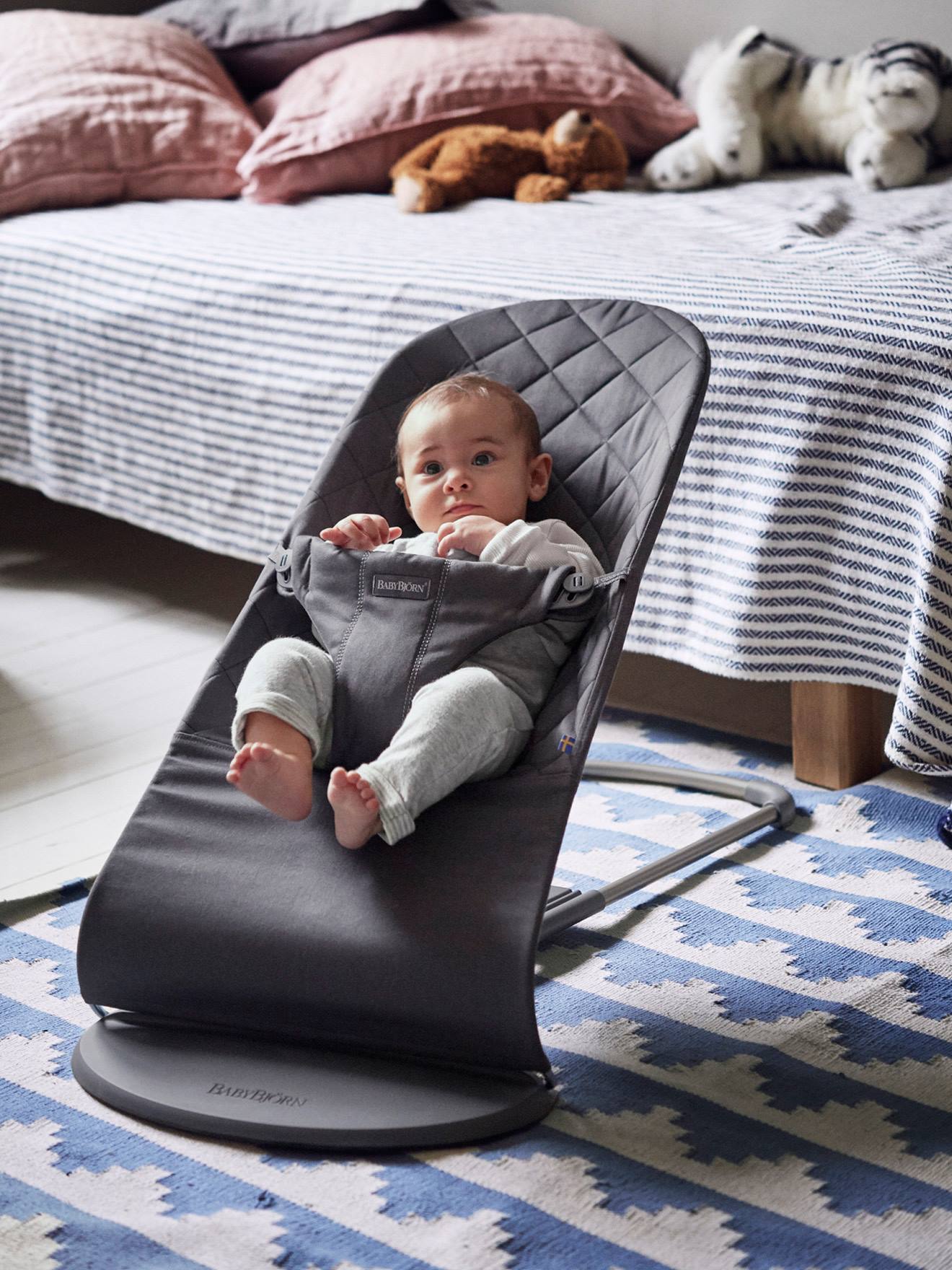 Pas besoin de piles, lorsqu'il s'agite, bébé déclenche naturellement le balancement du transat Bliss BabyBjörn ! Une sensation qu'il adore et qui l'apaise...