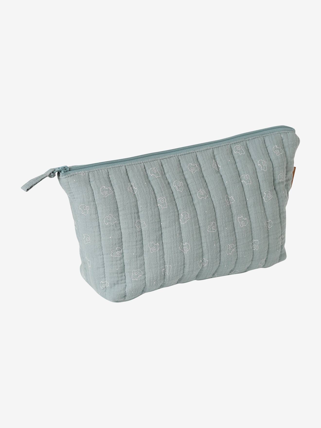 Adorable, cette petite trousse de toilette en gaze de coton accueille le nécessaire pour prendre soin de bébé ! Elle trouvera aussi bien sa place dans votre salle de bain que dans votre sac de voyage.