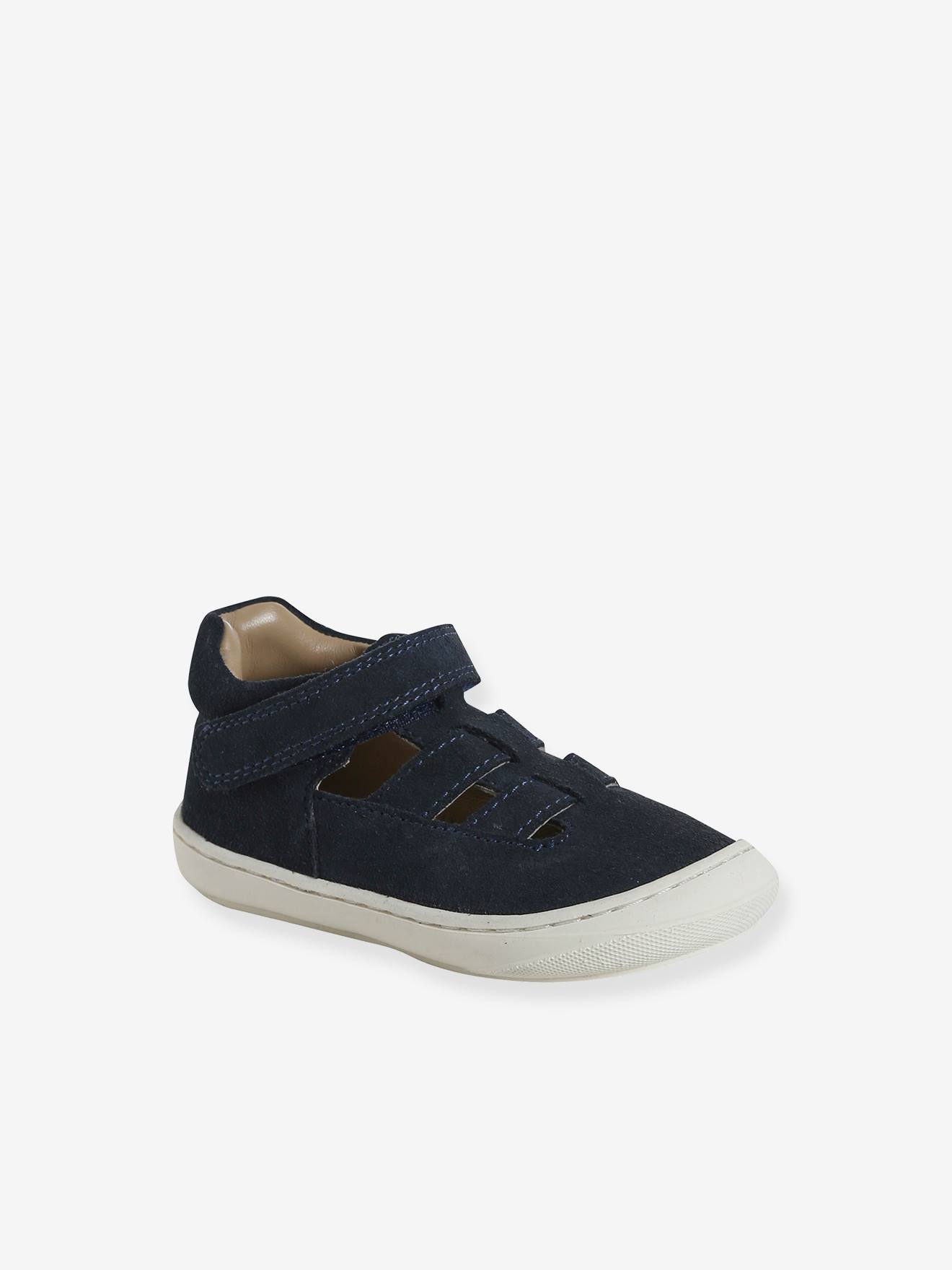 • Babysandalen met klittenbandsluiting van leer voor de eerste stapjes marineblauw - vertbaudet enfant