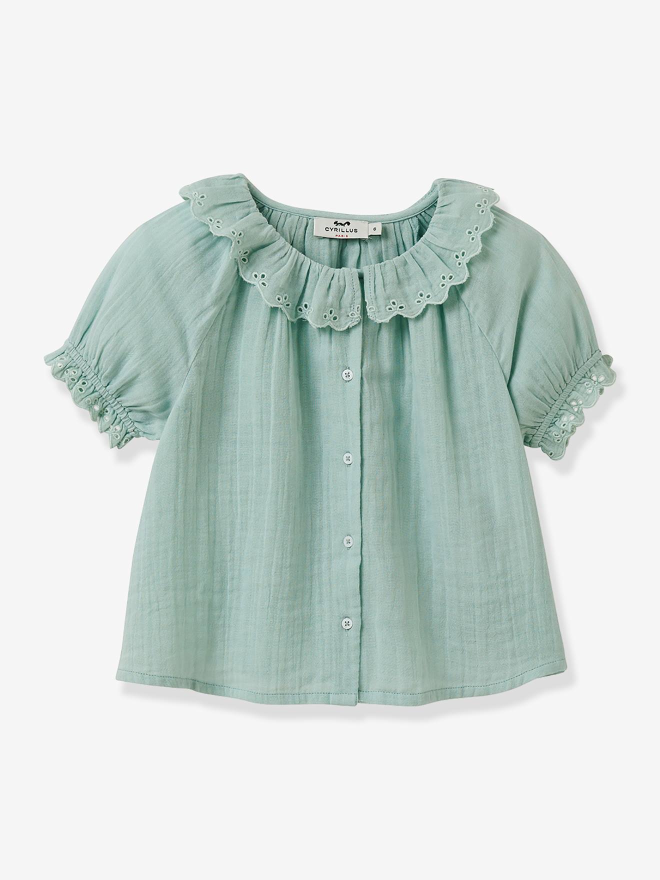 Home>Meisjeskleding>Overhemd voor meisjes, blouse, tuniek>Blouse voor meisjes met Engels borduurwerk in katoenen gaas CYRILLUS - blauwgroen