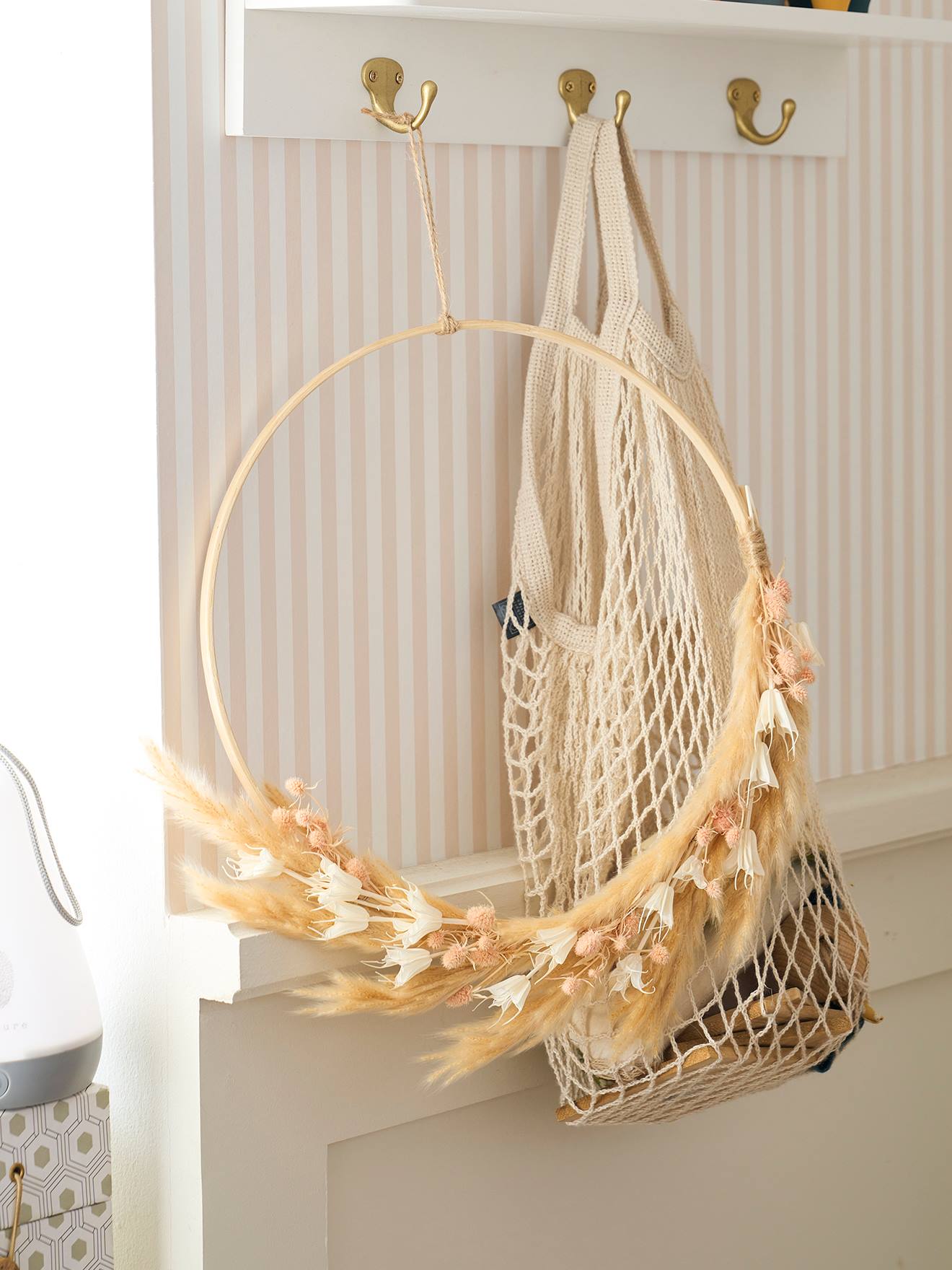 De onmisbare kroon van gedroogde bloemen voegt zich bij het vertbaudet team! Teder en vintage, het geeft een mooi retro tintje aan het decor.