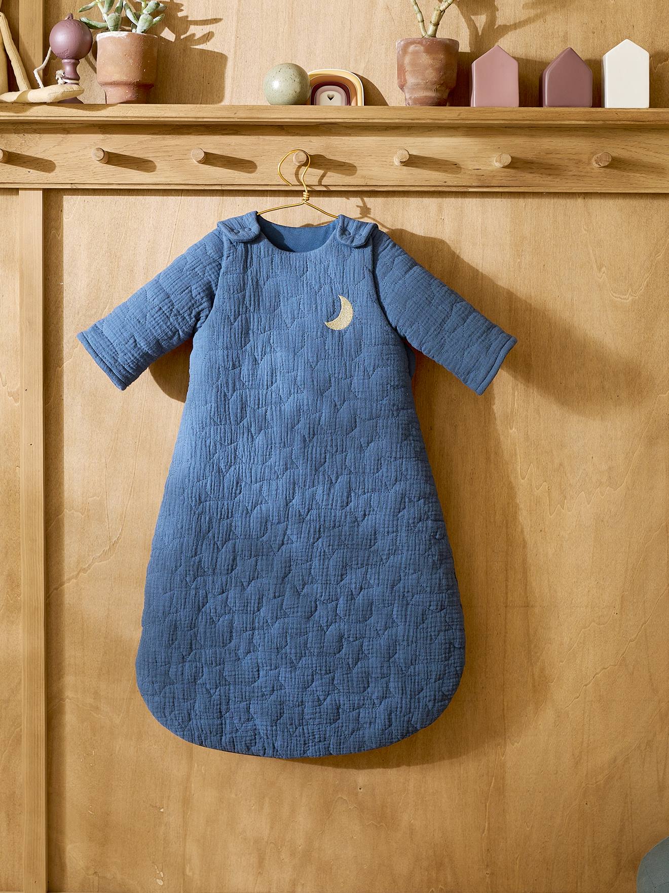Home>Linnengoed en decoratie voor kinderen en babies>Bedlinnen baby>Trappelzak baby, trappelzakken>Gewatteerde slaapzak met afritsbare mouwen NUITS DE RÊVE van biologisch katoengaas*. - marineblauw