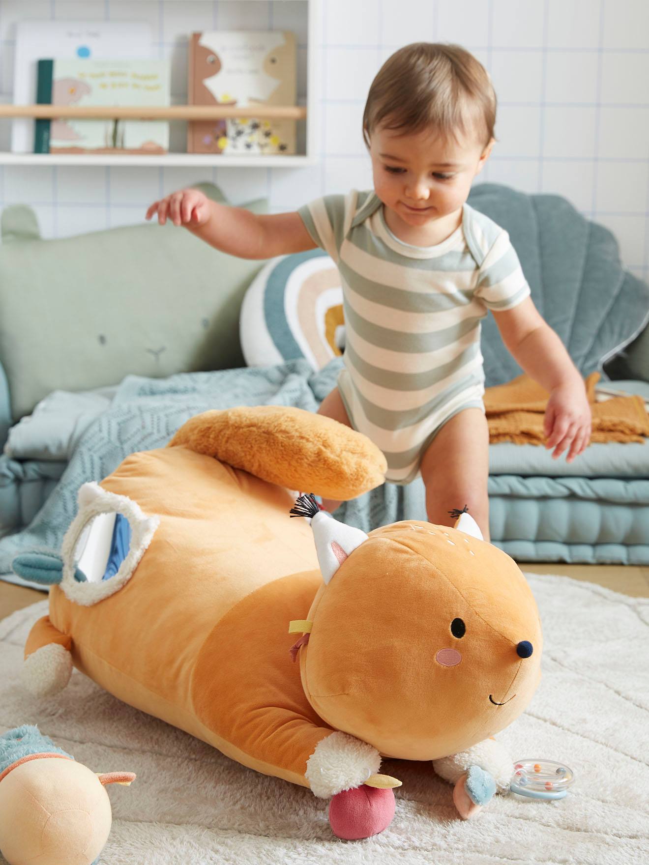 Home>Speelgoed en spelletjes baby en kinderen>Speelgoed voor jonge kinderen>Baby knuffeldoekjes>Grote activiteitenknuffel eekhoorn LES AMIS DE LA FORæT - oranje