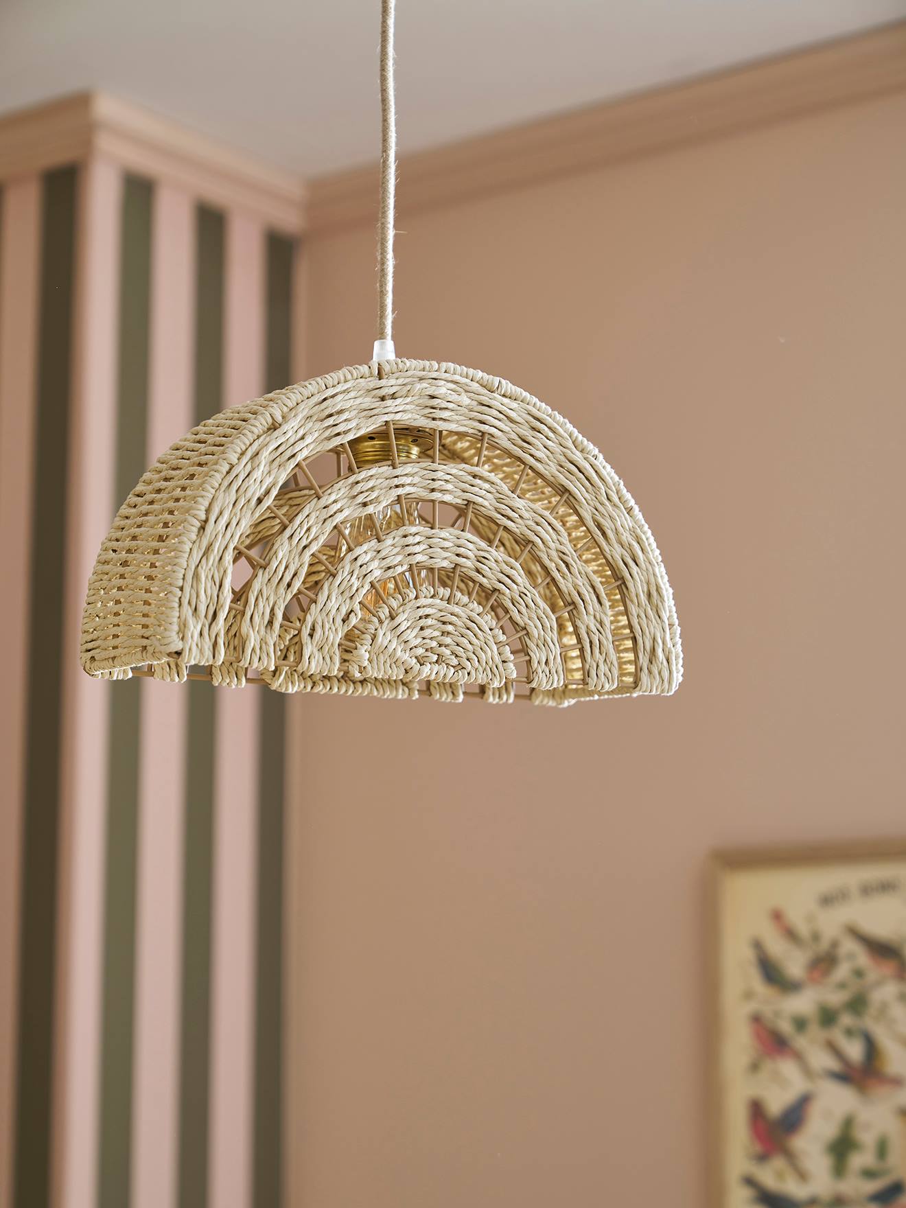 Deze ultra trendy hanglamp verspreidt het licht met een mooi effect dankzij het vlechtwerk. De regenboogvorm zal zeker alle kinderen aanspreken!