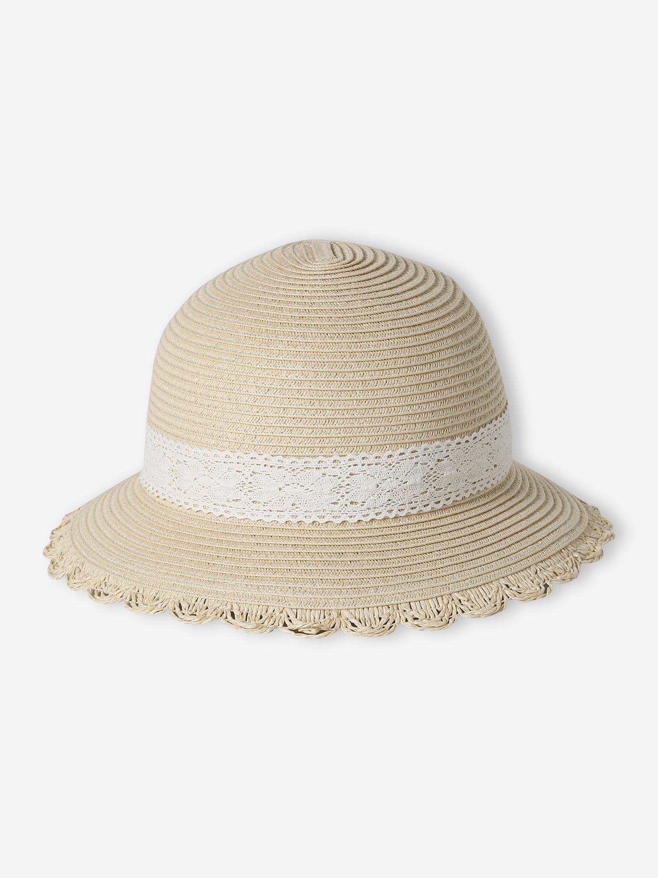 • Hoed van stro en kant voor babymeisjes zandbeige - vertbaudet enfant