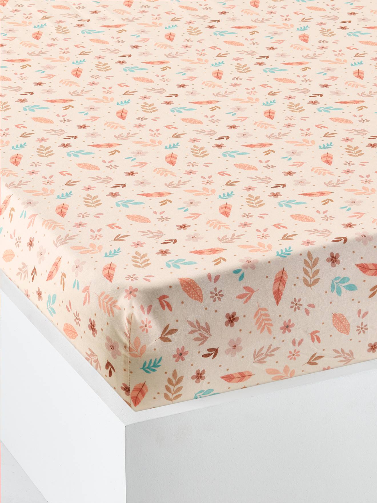 Een mooie print van bloemen en veren bedekt dit zachte hoeslaken van zuiver katoen!