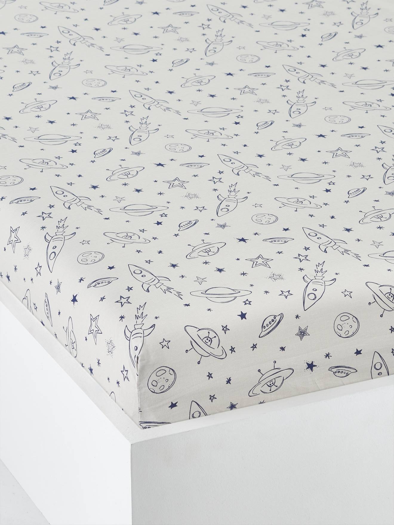 • Hoeslaken voor kidneren INTERGALACTIC Lichtgrijs met print - vertbaudet enfant