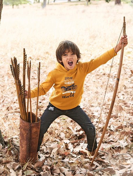 Jongenssweater van geborsteld molton 80% katoen, 20% polyester (behalve groen in zuiver katoen)