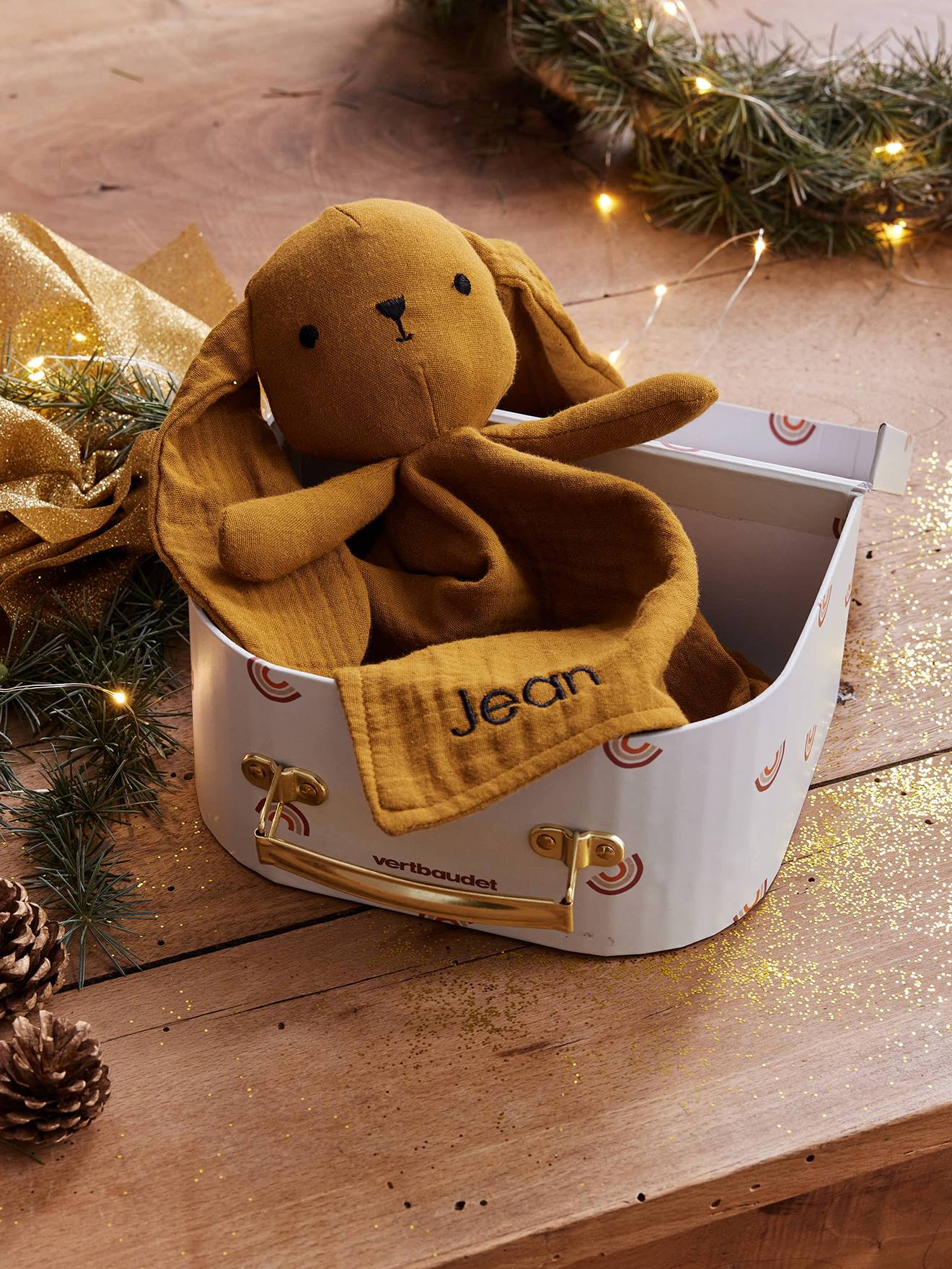 • Knuffel van katoengaas met koffertje blauw+okergeel+rozen - vertbaudet enfant
