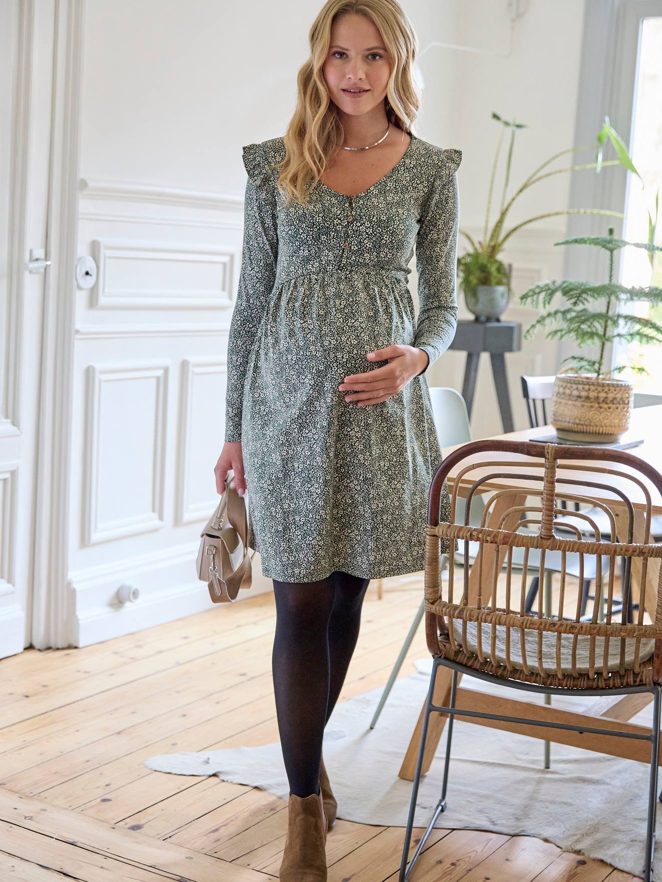 Korte gebreide zwangerschaps- en borstvoedingsjurk - dennen