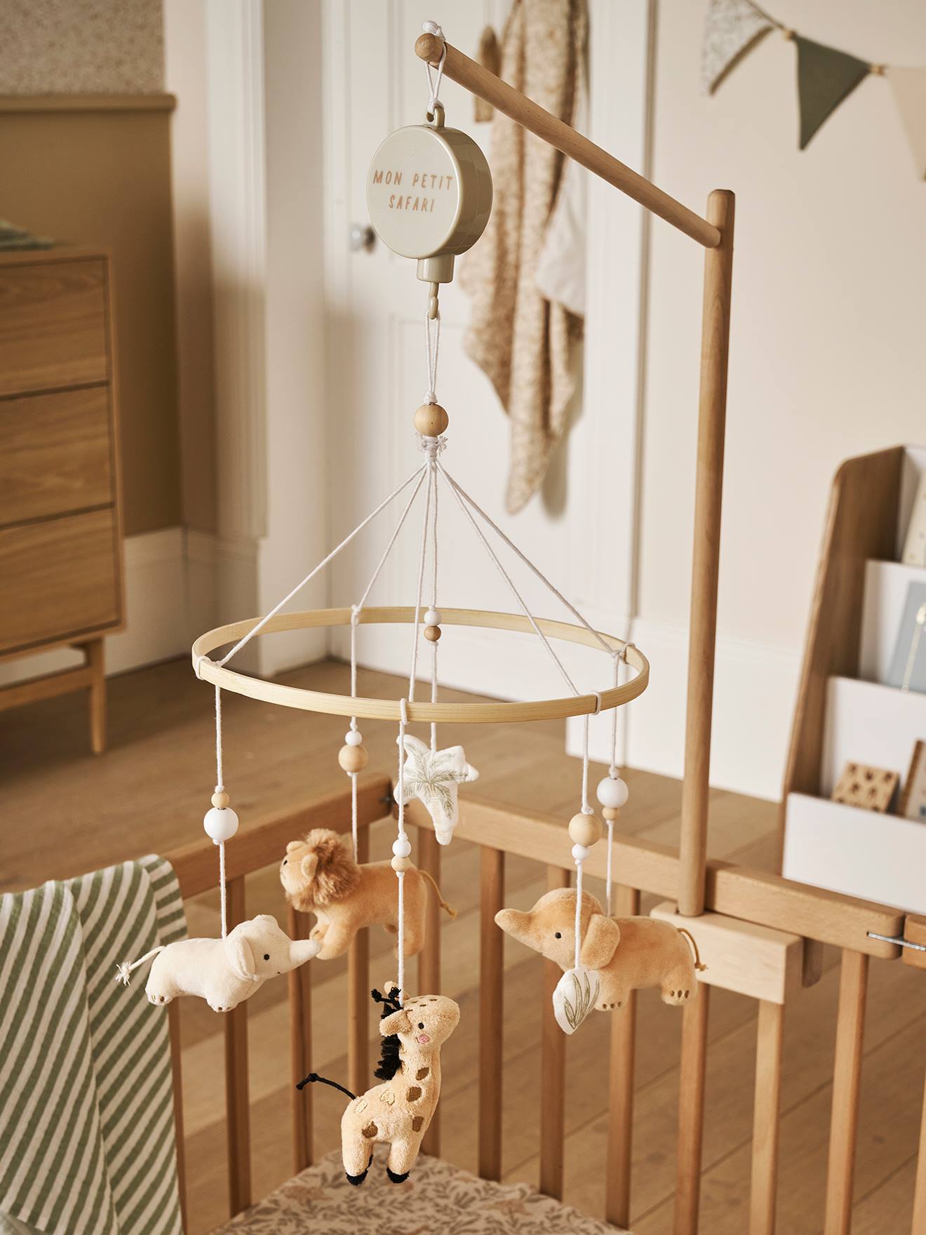 Een zachte mobiel om je baby te vergezellen tijdens het dromen. Met zijn savannedieren voegt het een exotisch tintje toe aan de slaapkamer van je kind.
