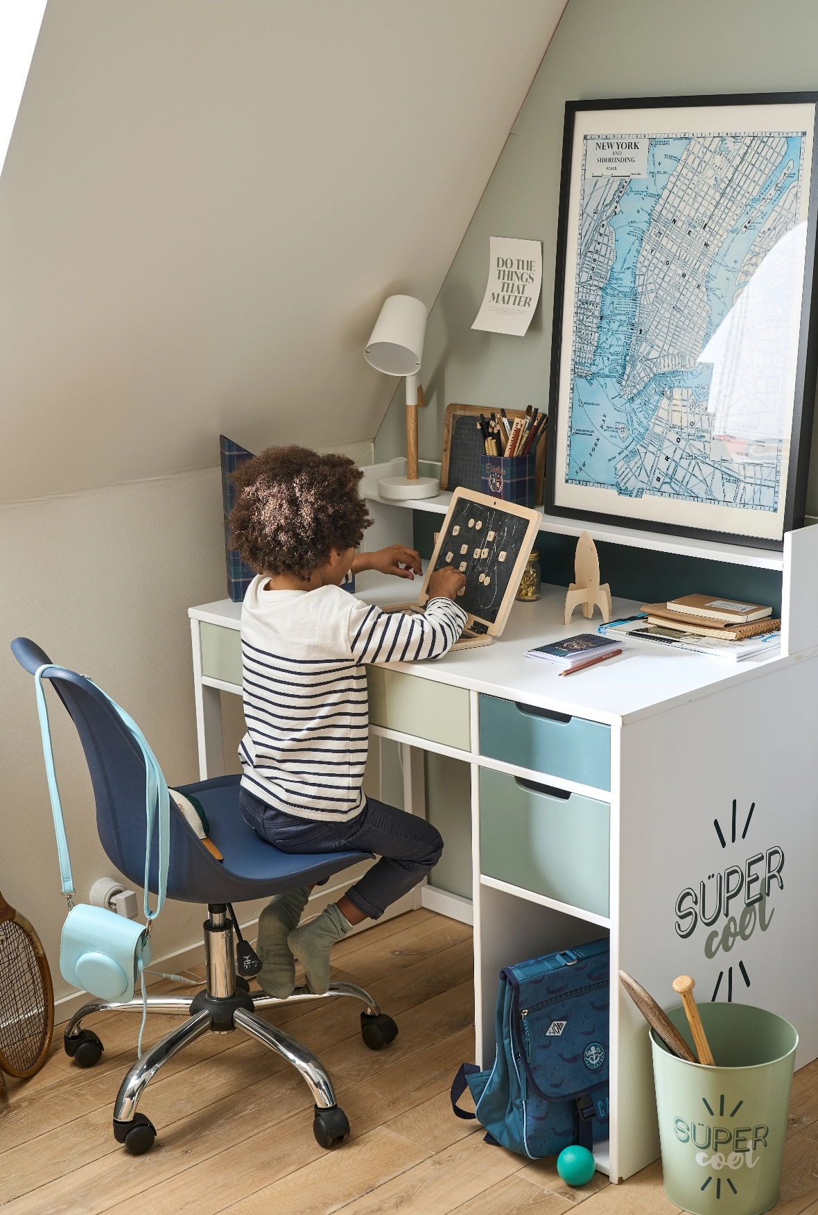 Of uw kind nu creatief, leergierig of een beetje lui is, creëer een ruimte die bij hem past met een mooi en praktisch bureau, een bijpassende stoel en enkele accessoires (die binnen uw budget passen)!