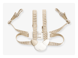 Het 5-puntsveiligheidsharnas is geschikt voor kinderstoelen van natuurlijk hout. Het geeft je baby voldoende bewegingsvrijheid om zittend en in alle veiligheid te eten en te spelen.