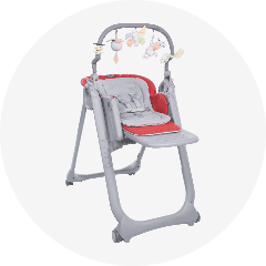 Denk ook aan het comfort van je baby: plaats een kussen of stoelverhoger op de kinderstoel zodat je baby comfortabel kan zitten. En om de kinderstoel om te toveren tot een speeltafeltje, raden wij het gebruik van een extra tafelblad aan dat het eetblad bedekt. Er zijn talloze extra opties: een wipstoeltje, een zitje met verstelbare hoogte, wielen, een voetensteun enz.