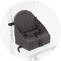 Stoelverhogers zijn gemakkelijk te vervoeren en ideaal voor op vakantie of een bezoekje aan opa en oma. Stoelverhogers zijn geschikt voor alle soorten stoelen dankzij hun bevestigingssysteem. Ideaal voor kinderen tussen 2 en 3 jaar! Ze zijn compact, makkelijk te vervoeren en te reinigen, en verkrijgbaar met of zonder kussen.