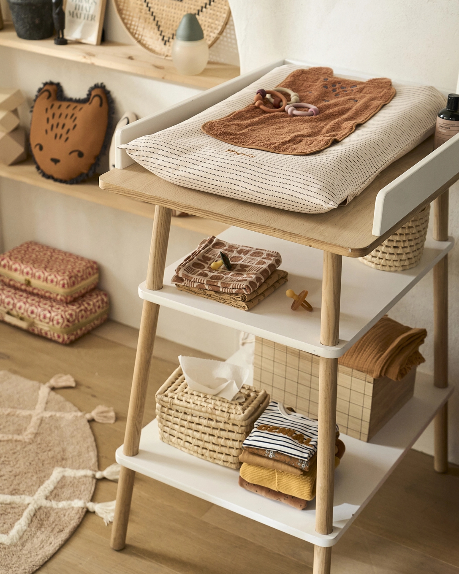 Een mooie mix van camel en etnische motieven, van stijl en geweldige ideeën om een originele, natuurlijke sfeer te creëren. Dieren met geruststellende ronde vormen hebben de overhand in de inrichting en het speelgoed.
