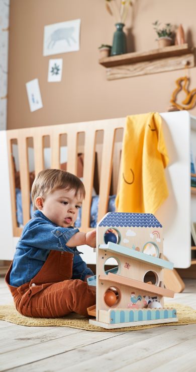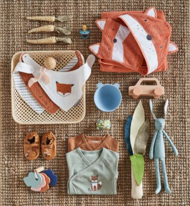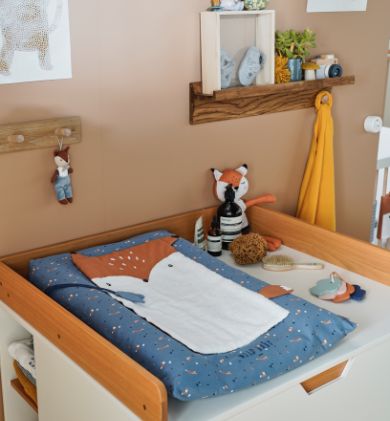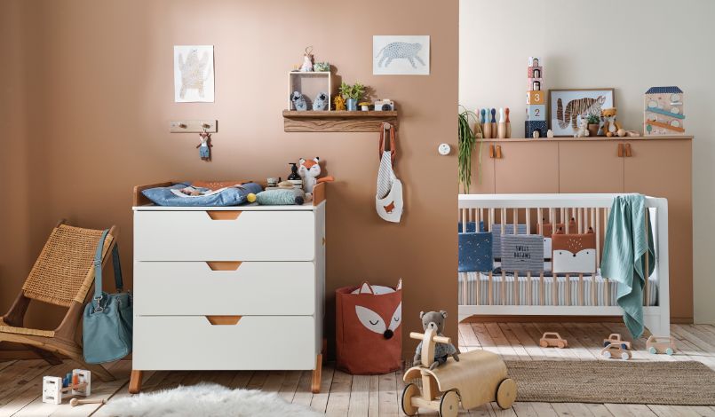 Trappelzak, bedomranding en aankleedkussen… Zal je baby de kleine vos vinden die zich in de kamer verbergt? In dit natuurlijke universum staan zachte materialen in warme kleuren centraal!