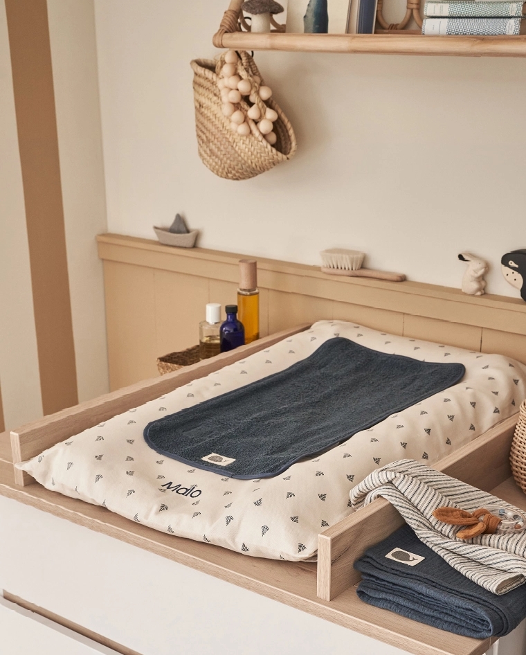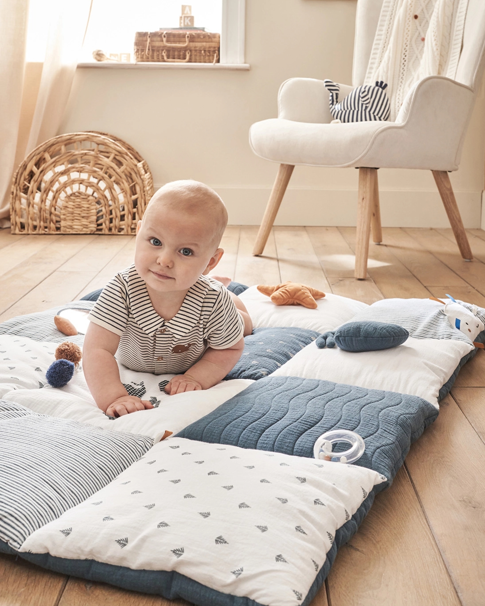 Een oceaan van zachtheid overspoelt de slaapkamer van uw kleintje. Met geruststellende kleuren, speelse materialen en vertederende motieven zal uw baby heerlijk slapen tussen zijn nieuwe vriendjes uit de zee!