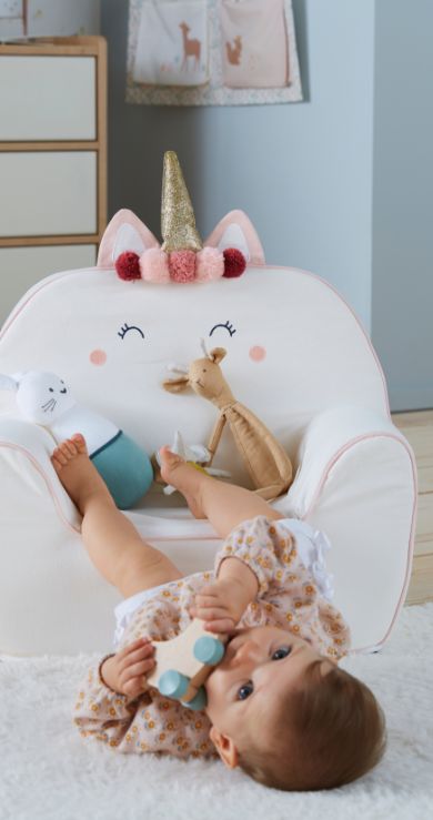 Het decor van deze kamer wordt gevormd door de lichte houten meubels, de fluwelen dieren en de natuurlijke kleuren. Van het aankleedkussen en de bedrukte bedomranding tot het speeltapijtje… Je baby zal dol zijn op dit betoverde bos!