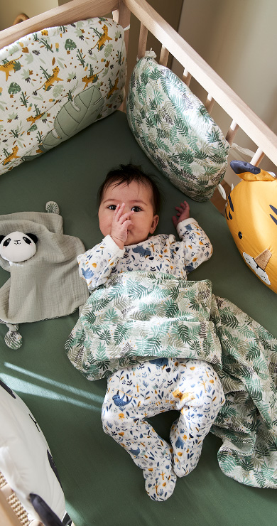Voyage au cœur d’un doux pays où règnent imprimés végétaux, rangements rigolos et jouets en forme d’animaux ! Kaki, vert d’eau et curry s’entendent à merveille et créent une ambiance déco on ne peut plus naturelle !