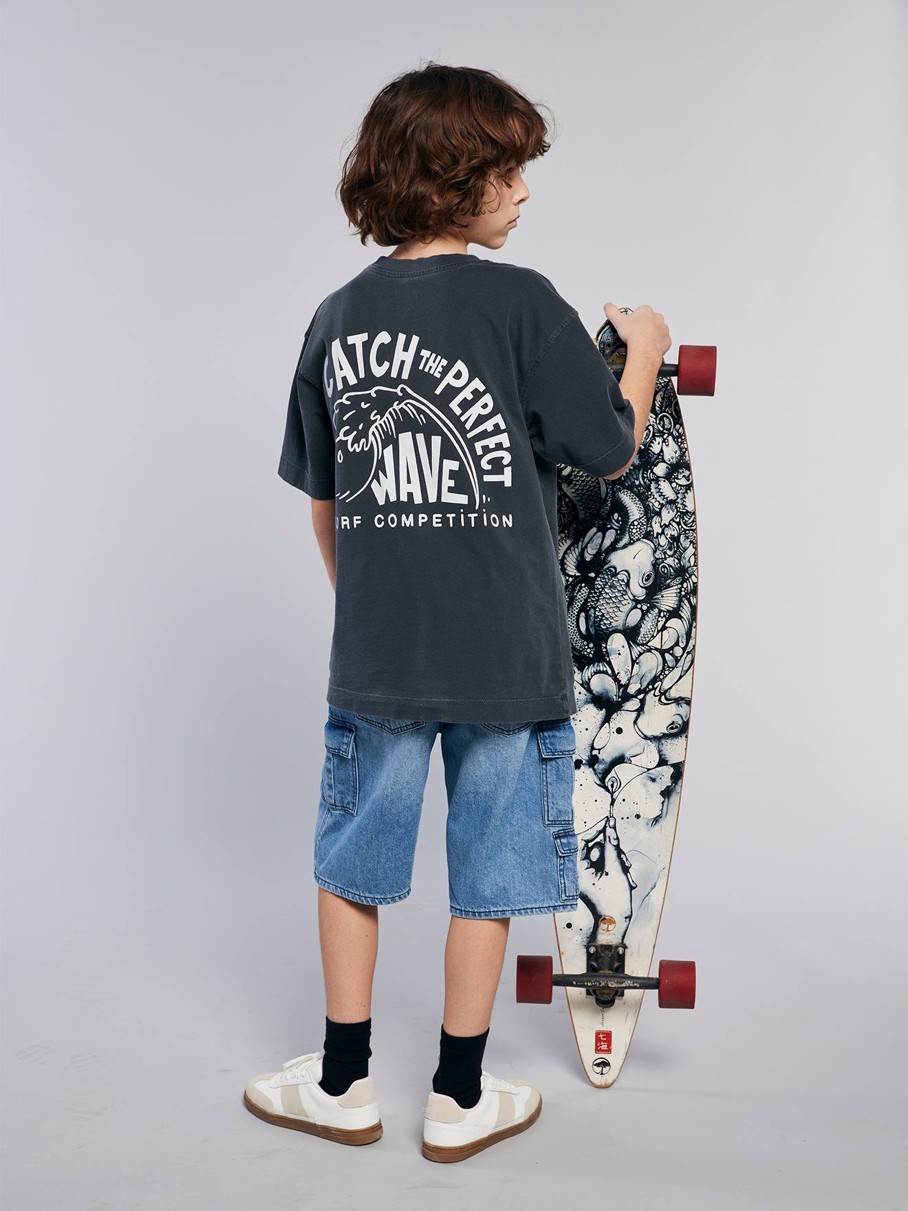 Toon zijn stijl met dit t-shirt dat helemaal in de trend zit, met een vintage effect, oversized pasvorm en exclusief ontwerp aan de voor- en achterkant voor jongens met een super stijlvolle look!