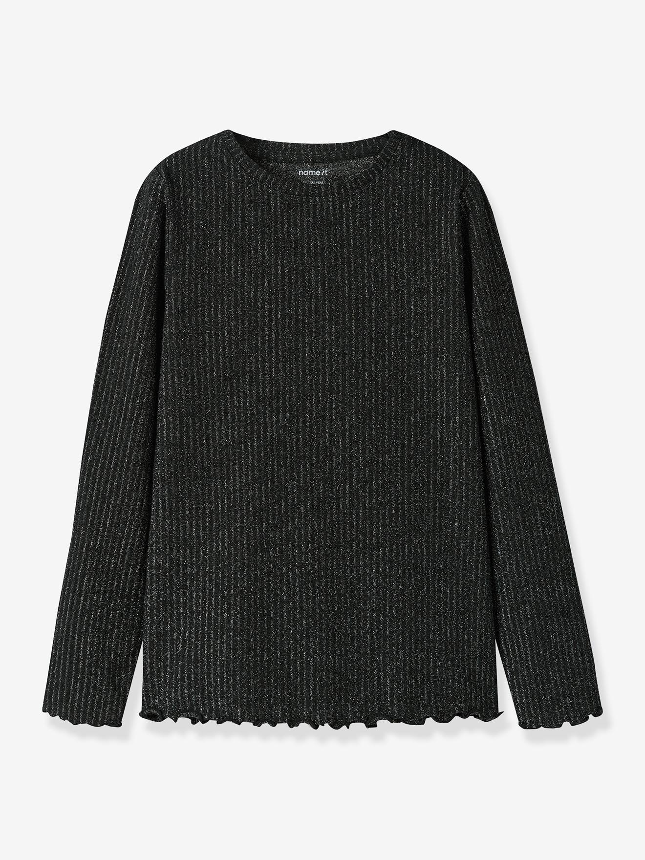 T-shirt met pailletten en lange mouwen NKFVEMMA meisje NAME IT Slim-Fit - zwart