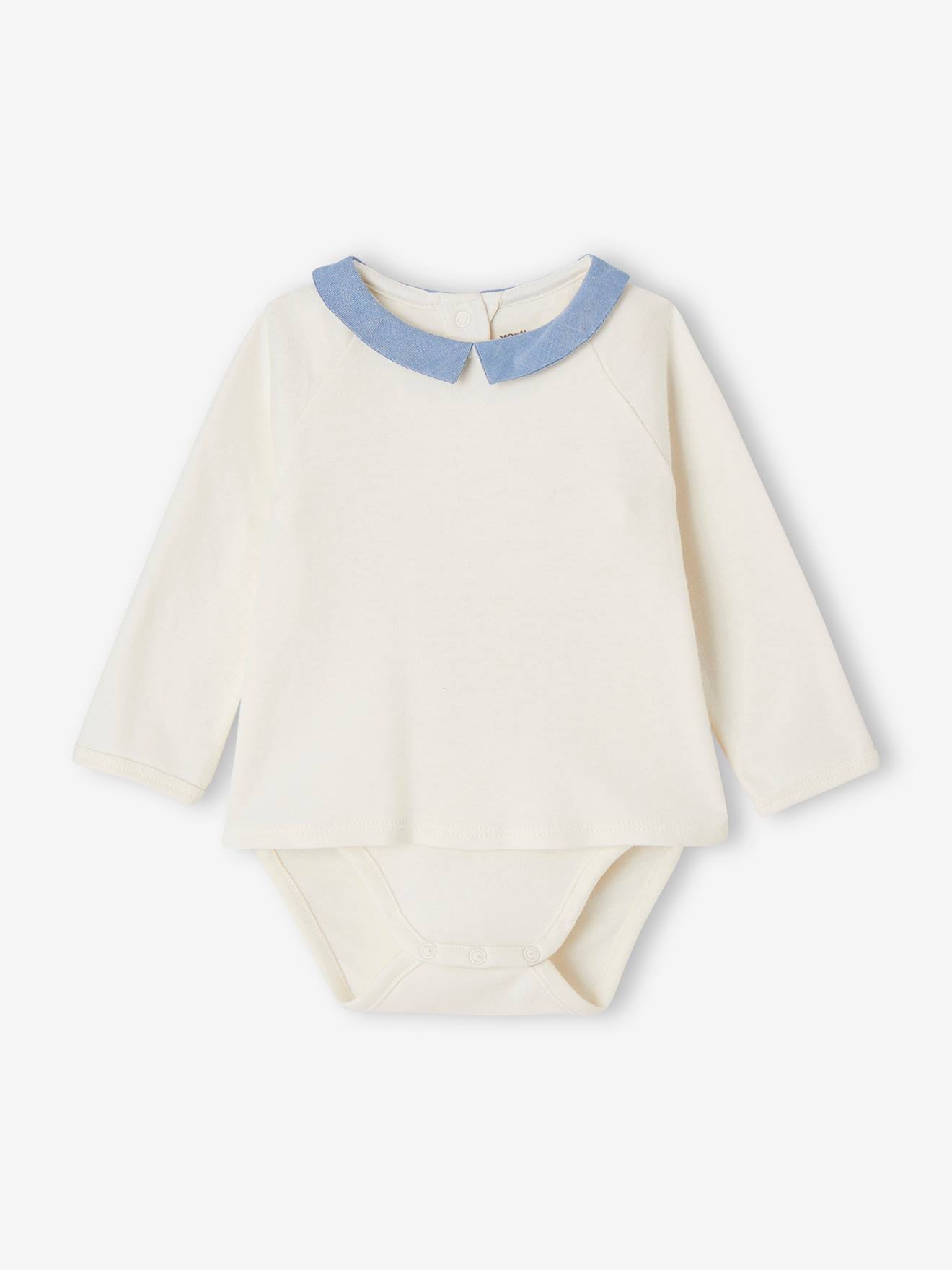 • T-shirt-romper met sierkraag baby personaliseerbaar ecru - vertbaudet enfant