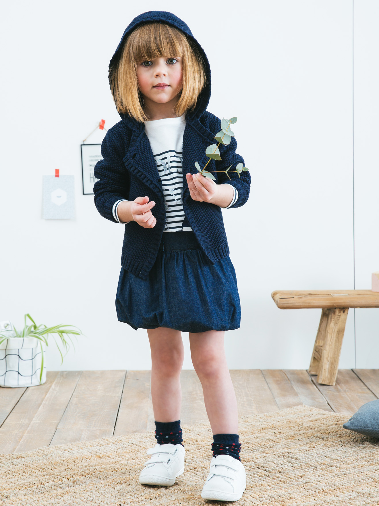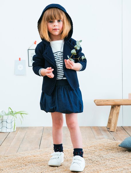 Dit jersey T-shirt met streepjes en een leuk motief heeft een vernieuwde, stijlvolle marinière-stijl!