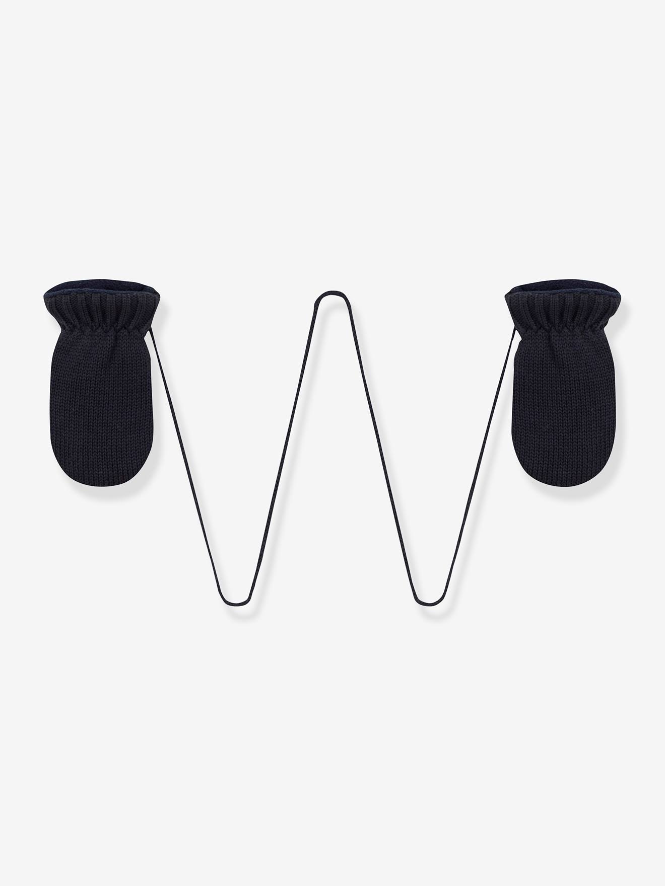 Wollen model gevoerd met gerecycled microfleece om baby's handjes heerlijk warm te houden. De wanten zijn met elkaar verbonden door een handig bandje dat in de mouwen van de jas kan worden geschoven, zodat je ze niet kwijtraakt.