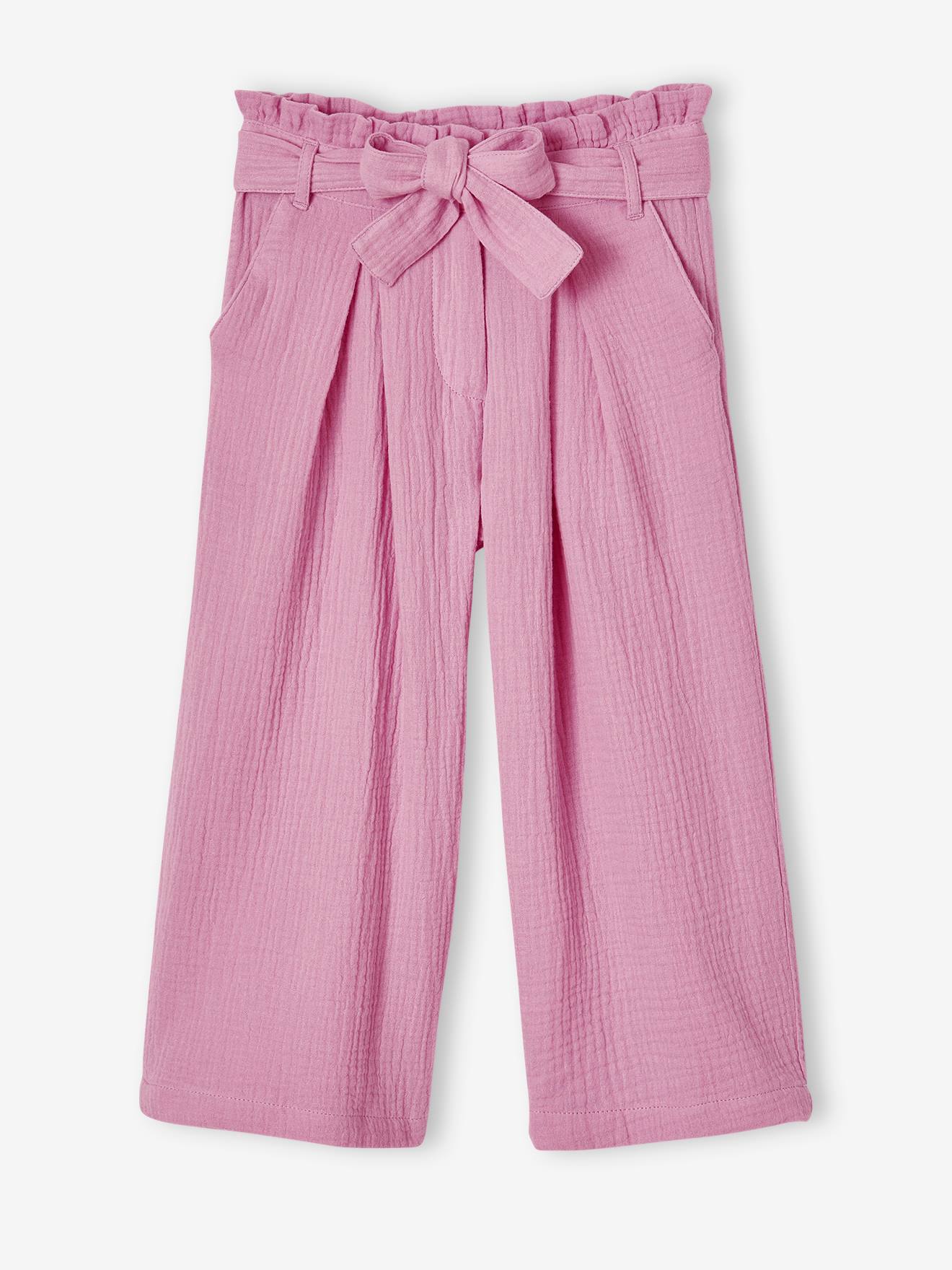 Home>Meisjeskleding>Meisjesbroek voor kinderen>Wijde korte broek 'paperbag' voor meisjes, van katoengaas - lila